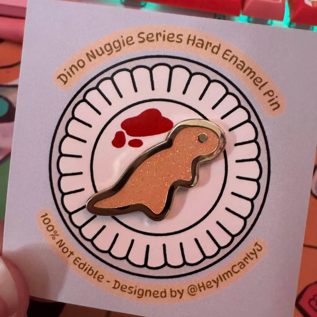 Dino Nuggies Enamel Pins and Shirt