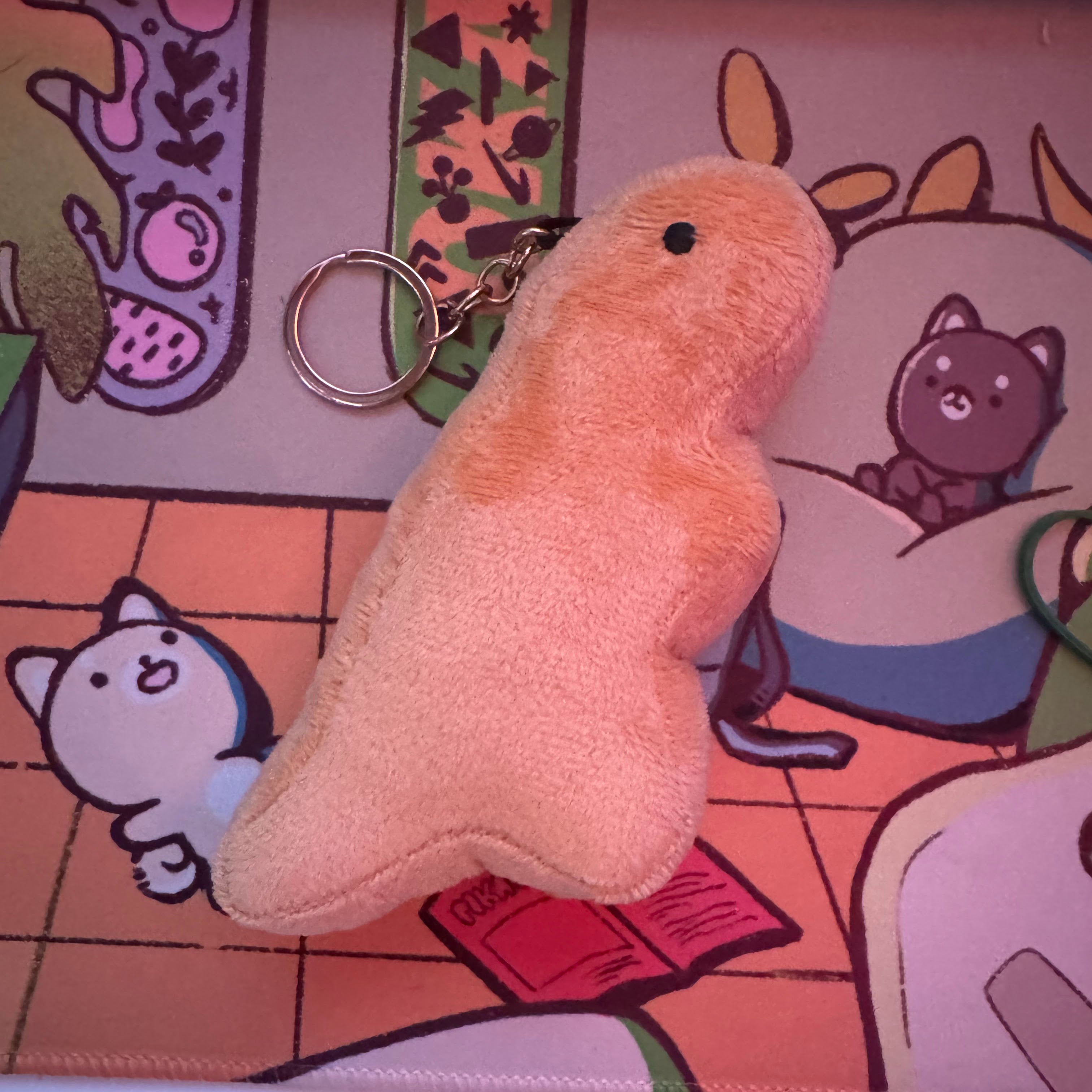 HeyImCarlyJ is known for her cute stickers, acrylic charms, and enamel pins. Her art style can be described as simplistic and chibi with fun colors!